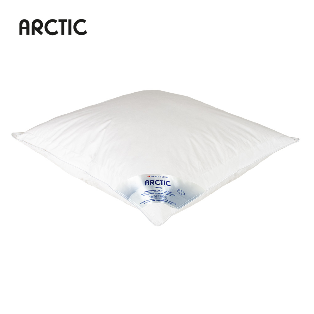 En 3-kammer DREAMS andedunspude fra ARCTIC. Kombinationen med dun og fjer giver dig en dejlig hovedpude – fjer giver støtte og dun blødhed. Denne pude er konstrueret med 3 kamre, hvor yderkamrene er fyldt med 30% dun og gør puden blød og behagelig. Kernen består af dun og småfjer, som giver god støtte til nakke og hoved. DREAMS fås i tre forskellige højder, så du får lige præcis den pude, der passer til dig. Puden er Downpass certificeret, der sikrer, at dunene er fremskaffet på etisk forsvarlig vis. Oeko Tex Standard 100 certificeringen er din garanti for, at dynen er fri for skadelige stoffer.
