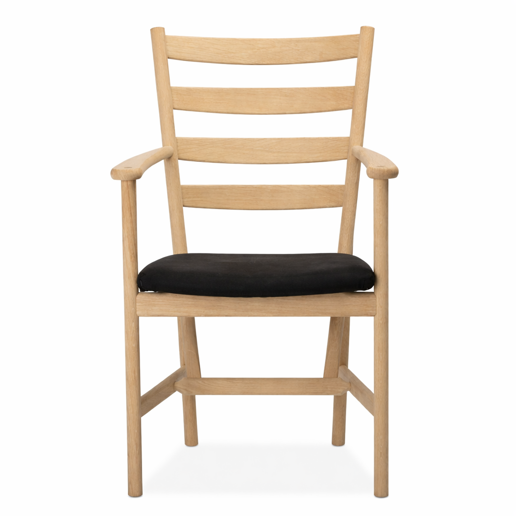 SH armstolen, designet af Søren Holst, stolen, er et enestående stykke dansk design. Stolen er en blanding af klassisk og moderne design, inspireret af den amerikanske Shaker-kultur med et tydeligt dansk præg. SH armstolen er fremstillet af massivt egetræ af førsteklasses kvalitet, hvilket gør den ikke kun robust og holdbar, men også elegant og tidløs i sit design. Vælg mellem et komfortabelt lædersæde eller et sofistikeret træsæde, der begge er designet til at supplere stolens slanke og enkle design. SH-stolen er designet til at passe perfekt sammen med SH shaker-bordet og skaber en samlet spisegruppe, der er både stilfuld og funktionel. SH armstol er perfekt designet, så den passer til et spisestuebord, og let kan bruges som spisebordsstol rundt om bordet. Shaker-stolen et perfekt eksempel på dansk design når det er bedst. Dens rene linjer, robuste materialer og tidløse appel gør den til et must-have for alle, der sætter pris på højkvalitets og dansk design. SH armstolen fås i mange trævarianter, herunder; sæbebehandlet eg, olieret eg, sortlakeret eg, røget og olieret eg eller olieret valnød.