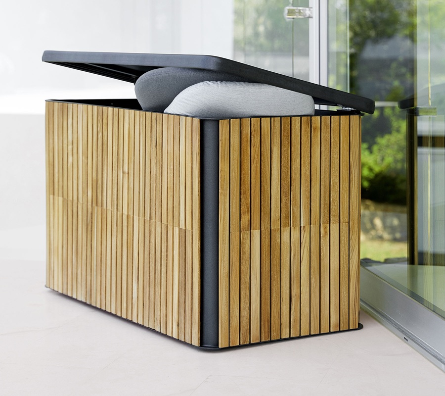 Combine hyndeboksen er en rummelig og funktionel opbevaringsløsning til dine udendørshynder. Boksen er fremstillet i lava-grå, pulverlakeret aluminium med smukke teaklameller, som giver et eksklusivt og moderne udtryk. Kombinationen af de to materialer skaber et stilrent design, der passer perfekt ind i enhver udendørs indretning.