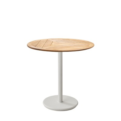 Bordet er fremstillet i vejrbestandig, pulverlakeret aluminium og har en unik konstruktion med integreret modvægt i foden, som sikrer stabilitet i al slags vejr. Go er designet af Cane-line Design, og basen kan kombineres med bordplader i forskellige størrelser og designs.
