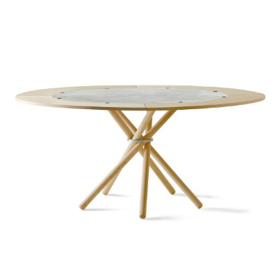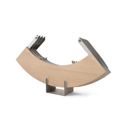 Med Hector tillægsplader udvides spisebord Hector 120 fra en diameter på 120 cm til 170 cm. Når pladerne er monteret, kan bordet rumme op til 10 personer. Tillægspladerne er lette at montere og afmontere og fås i enten lys eller mørk eg. De leveres desuden med et diskret gulvstativ til opbevaring, når de ikke er i brug.