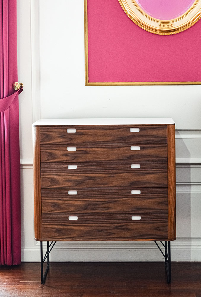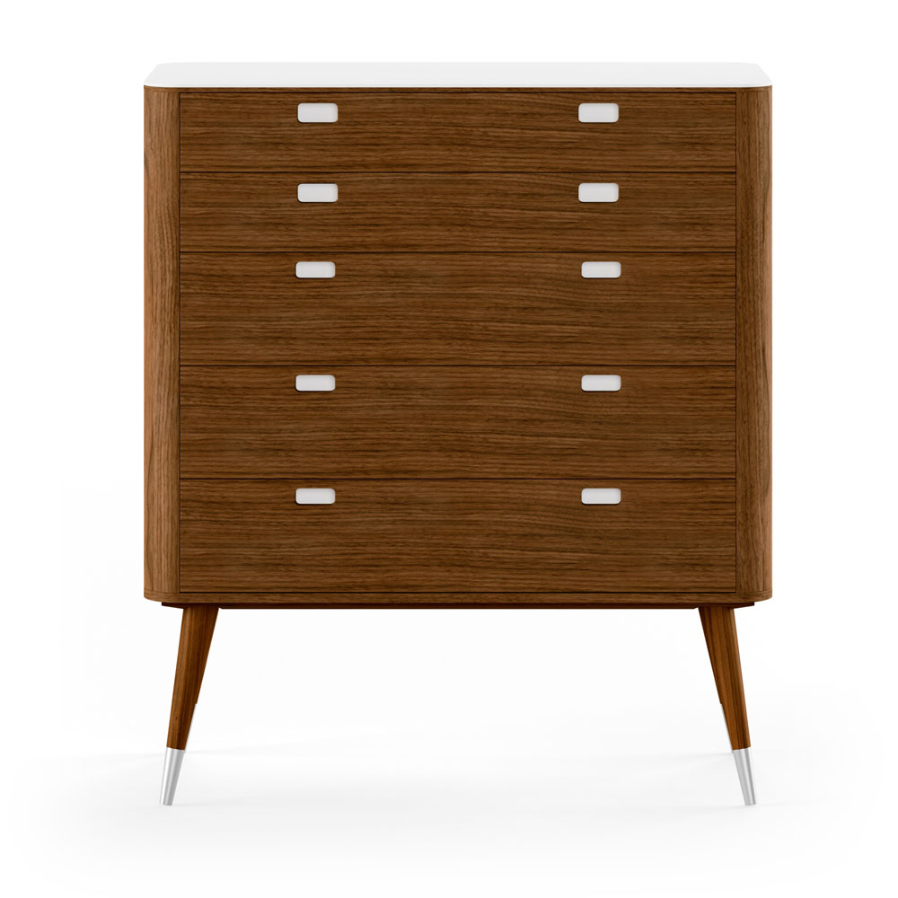 Naver Collections AK 2405-2431 moderne kommode serie skaber ikke kun orden i hjemmet, de er også en fryd for øjet. De buede kanter gør kommoden visuelt flot fra alle sider, og de høje point ben giver kommoden et let og elegant udtryk.Her er der virkelig sans for detaljen med Corian top og massive træskuffer med sinkning, der kendetegner gedigent håndværk, som er skabt til at holde i generationer.