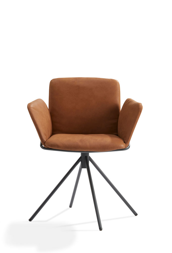 Easy jr er en lænestol, hvor rammen ligger udenpå – også mulig med drejefod. Et ungt og tidssvarende design, men med et strejf af retro.