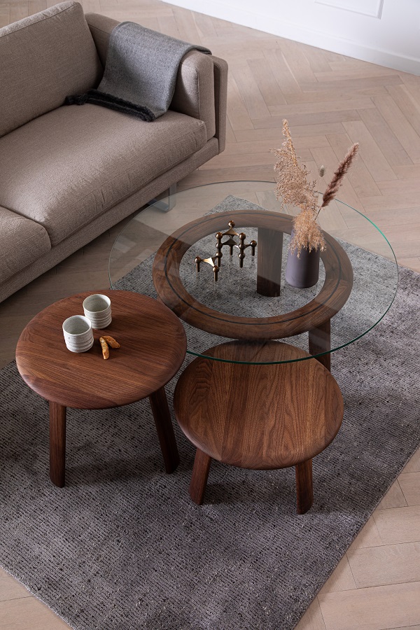 Sidebordene er skabt med stor respekt for materialet og klassisk håndværk, kombineret med moderne skandinavisk design. Den karakteristiske konstruktion med tre let skrånende ben giver bordet et både luftigt og unikt udtryk, der ikke ses andre steder.