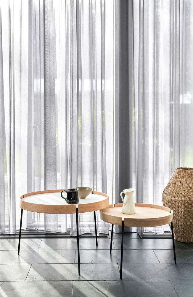 AK 710-725-750 Turn bakkeborderne med vendbar bakke (1 side finér / 1 side laminat) giver mulighed for at lege med sin kreativitet. Sofabordene kan sammensættes af flere til et helt personligt sofabord eller bruges enkeltvis, som eksempelvis et sidebord ved en lænestol. Bordene fås i tre forskellige diametre og to højder, hvilket giver mulighed for at sammensætte flere i harmoniske konstellationer. Vælg mellem otte aktuelle laminatfarver og tre eksklusive træsorter, der tilfører varme og karakter. Uanset kombination er resultatet et stilrent møbel, der både er praktisk og visuelt står let og elegant i rummet. De smukke Turn borde er designet af Nissen & Gehl MDD.