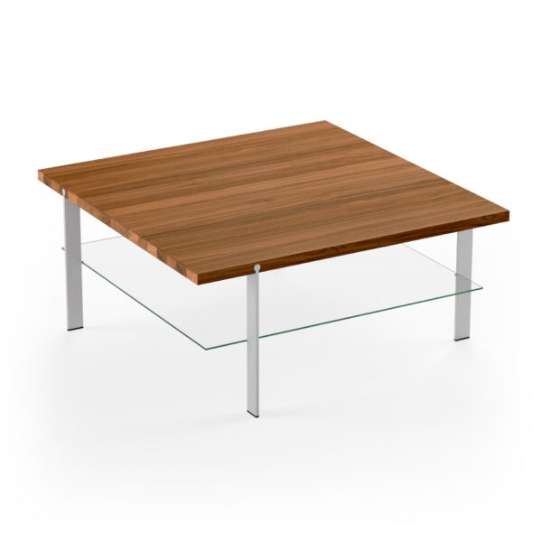 Klassisk sofabordserie med sans for detaljen og træet i fokus. Disse flotte og stilrene sofaborde har en massiv bordplade med indfræset ben i rustfrit stål, som på raffineret vis integreres med den massive bordplade. Glasplader som underbord.