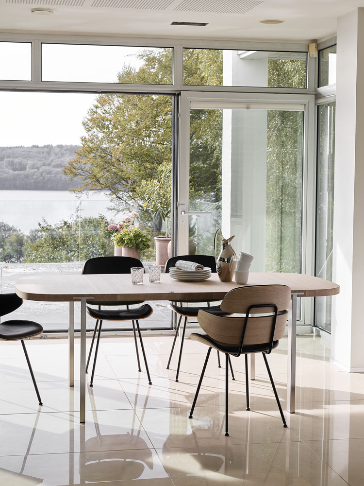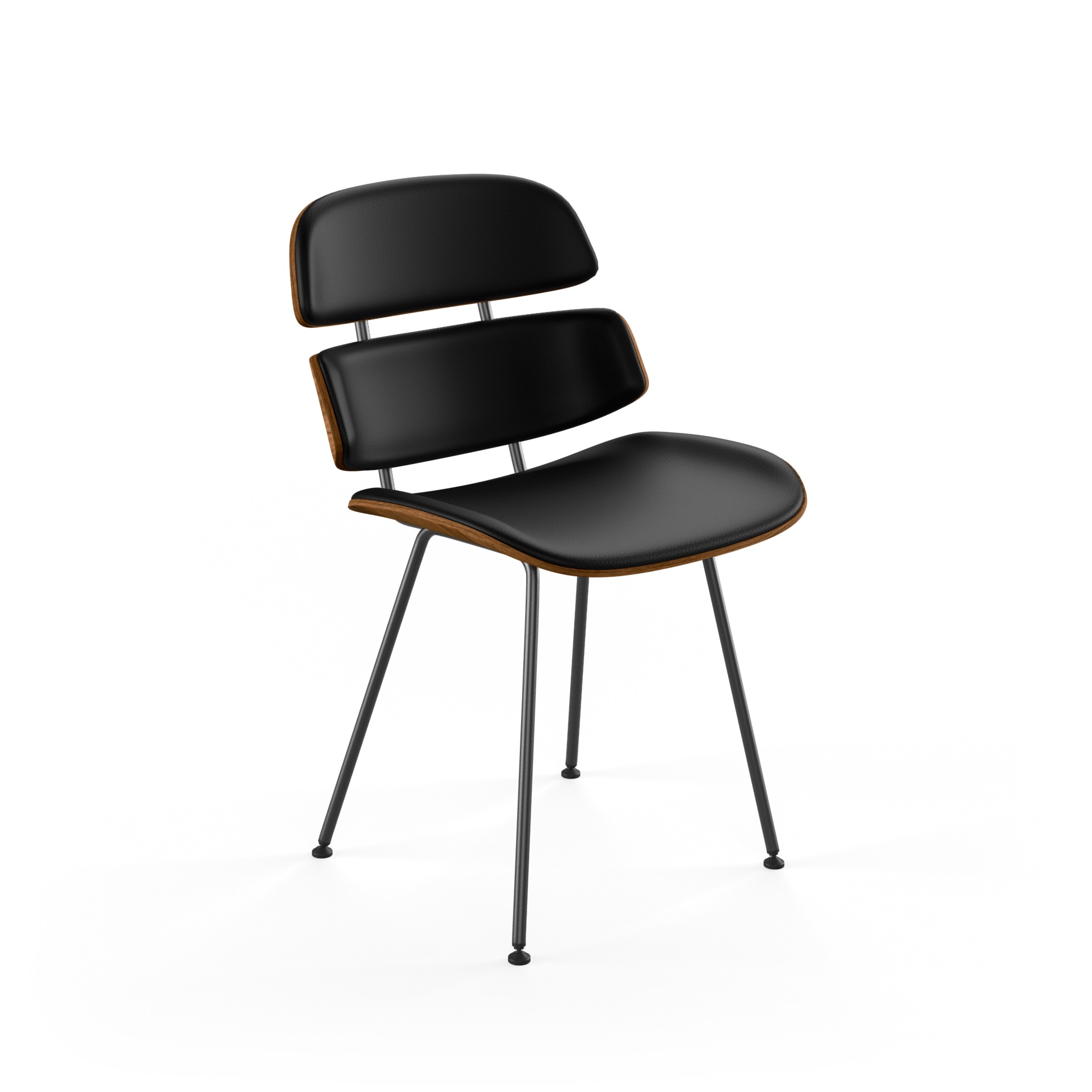 Midas er en spisebordsstol med stærke rødder i den danske designhistorie og det danske håndværk. De formspændte elementer i stolen er udført og skåret til i bløde kurver, der tager godt imod den siddende – nogle steder følges kurverne ad, andre steder nærmer de sig elegant hinanden for atter at gå hver til sit. Kurverne står grafisk stærkt og overbevisende optegnet mod både polstringens afslutning og omgivelserne. Med et enkelt understel i sort pulverlakeret stål bliver stolen let og elegant. Midas stolen fremstilles i formspændt finér i træsorterne ask, eg og valnød.