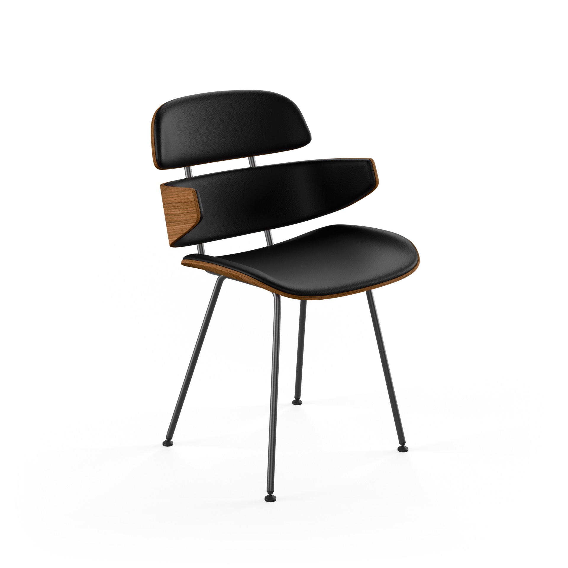 Midas er en spisebordsstol med stærke rødder i den danske designhistorie og det danske håndværk. De formspændte elementer i stolen er udført og skåret til i bløde kurver, der tager godt imod den siddende – nogle steder følges kurverne ad, andre steder nærmer de sig elegant hinanden for atter at gå hver til sit. Kurverne står grafisk stærkt og overbevisende optegnet mod både polstringens afslutning og omgivelserne. Med et enkelt understel i sort pulverlakeret stål bliver stolen let og elegant. Midas stolen fremstilles i formspændt finér i træsorterne ask, eg og valnød.