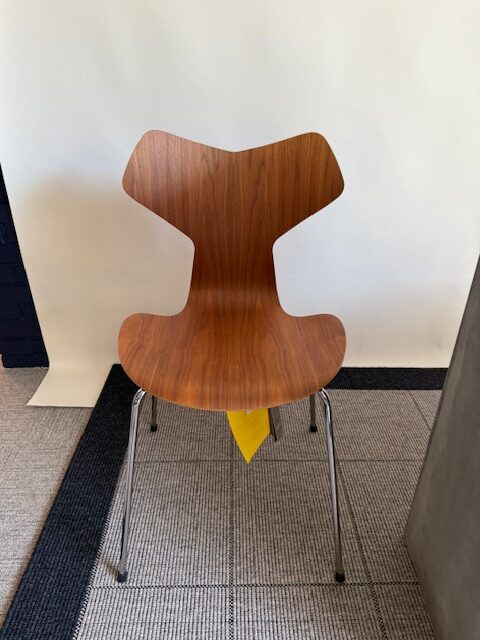 Fritz Hansen spisebordsstol model Grand Prix i valnød med krom ben.