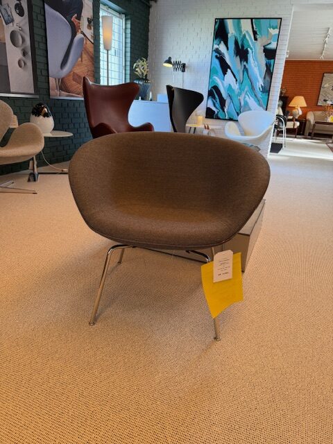 Fritz Hansen lænestol model gryden i capture grå med chrome stel.