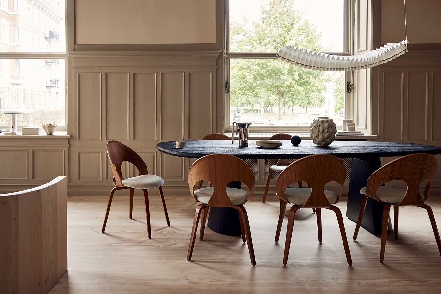 VL110 er en stol med øje for detaljen. Det organisk formede ryglæn med de karakteristiske øjeudskæringer giver stolen sit udtryk og har givet den navnet “Øjestolen”. Designet balancerer lethed og raffineret æstetik, hvilket gør den velegnet til professionelle miljøer som mødelokaler, konferencerum og receptioner. Stolen tilbyder høj siddekomfort og en tidløs elegance, der tydeligt afspejler den danske designstil fra 1950’erne. VL110 kan vælges med træ- eller stålben, som drejestol, og den findes i et stort udvalg af både stof- og lædervarianter samt flere forskellige træsorter.